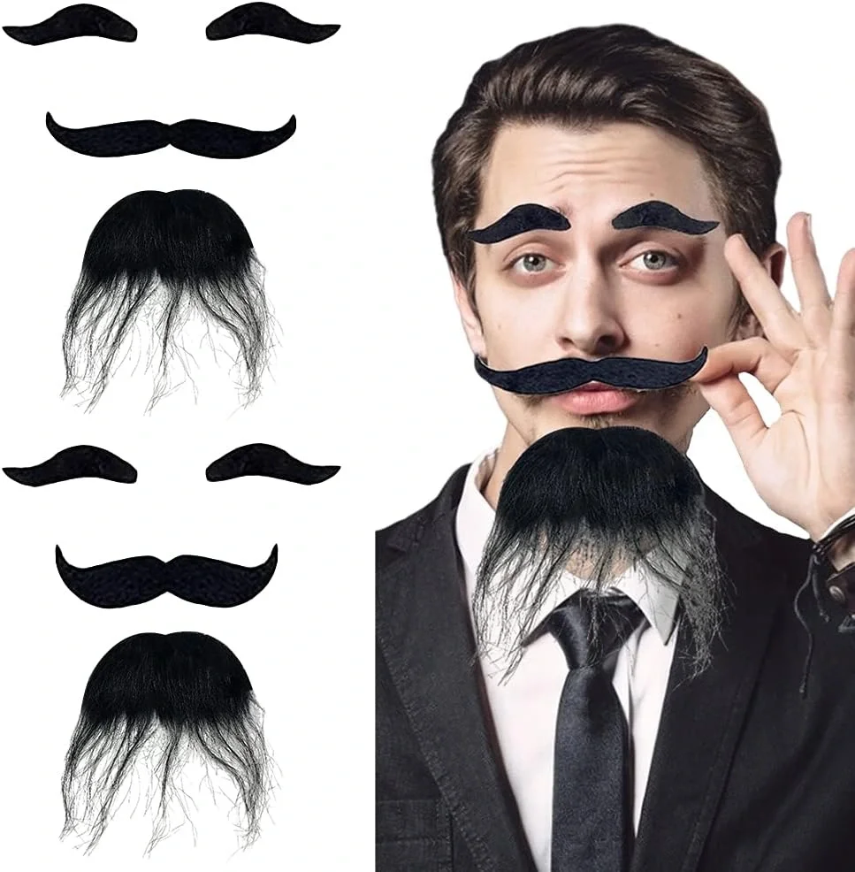 Siyah Renk Kendinden Yapışkanlı Takma Sakal Bıyık ve Kaş Seti
