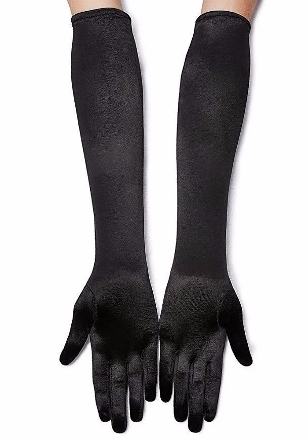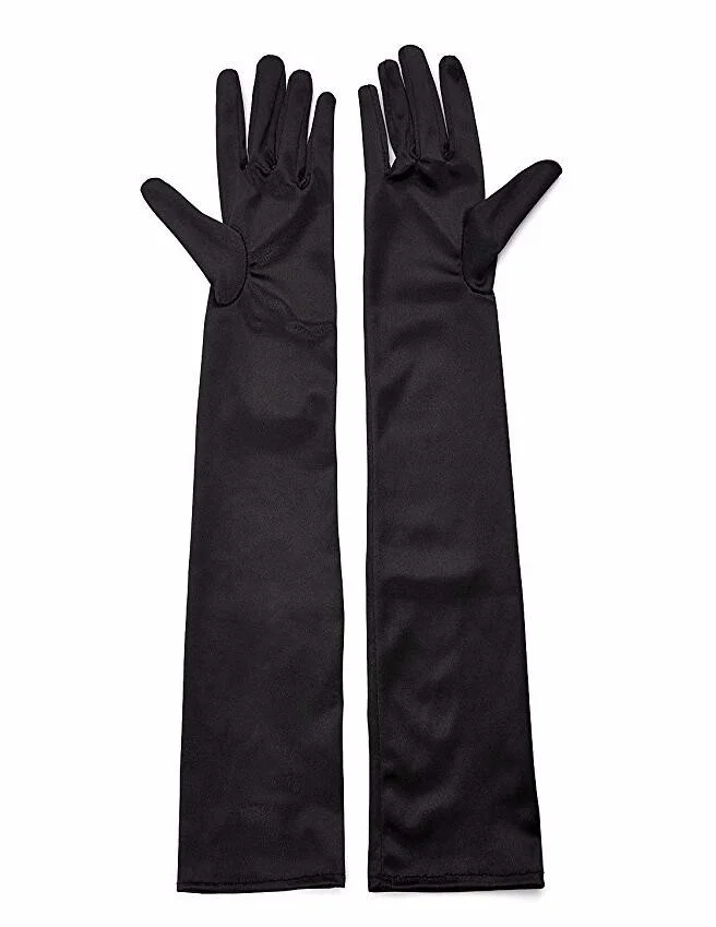 Siyah Renk Likralı Dirseğe Kadar Uzun Kumaş Eldiven 40 cm