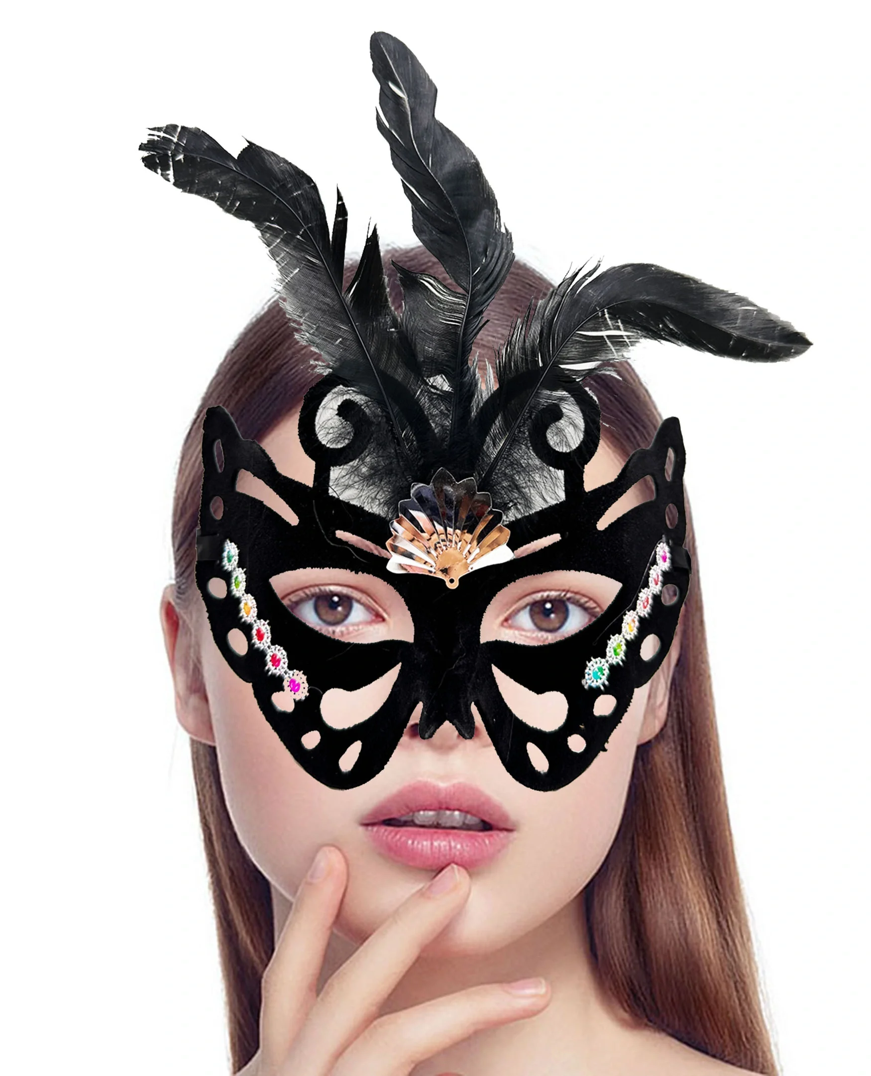 Siyah Renk Siyah Süet Kaplama Kelebek Model Parti Balo Maskesi, balolar, maskeli partiler, özel günler gibi özel etkinliklerde zarif ve gizemli bir kelebek güzelliğiyle göz kamaştırmak isteyenler için mükemmel bir seçimdir. Yumuşak siyah süet kaplaması ve zarif kelebek tasarımı ile bu maske sizi partinin en şık ve dikkat çekici konuğu yapacak.