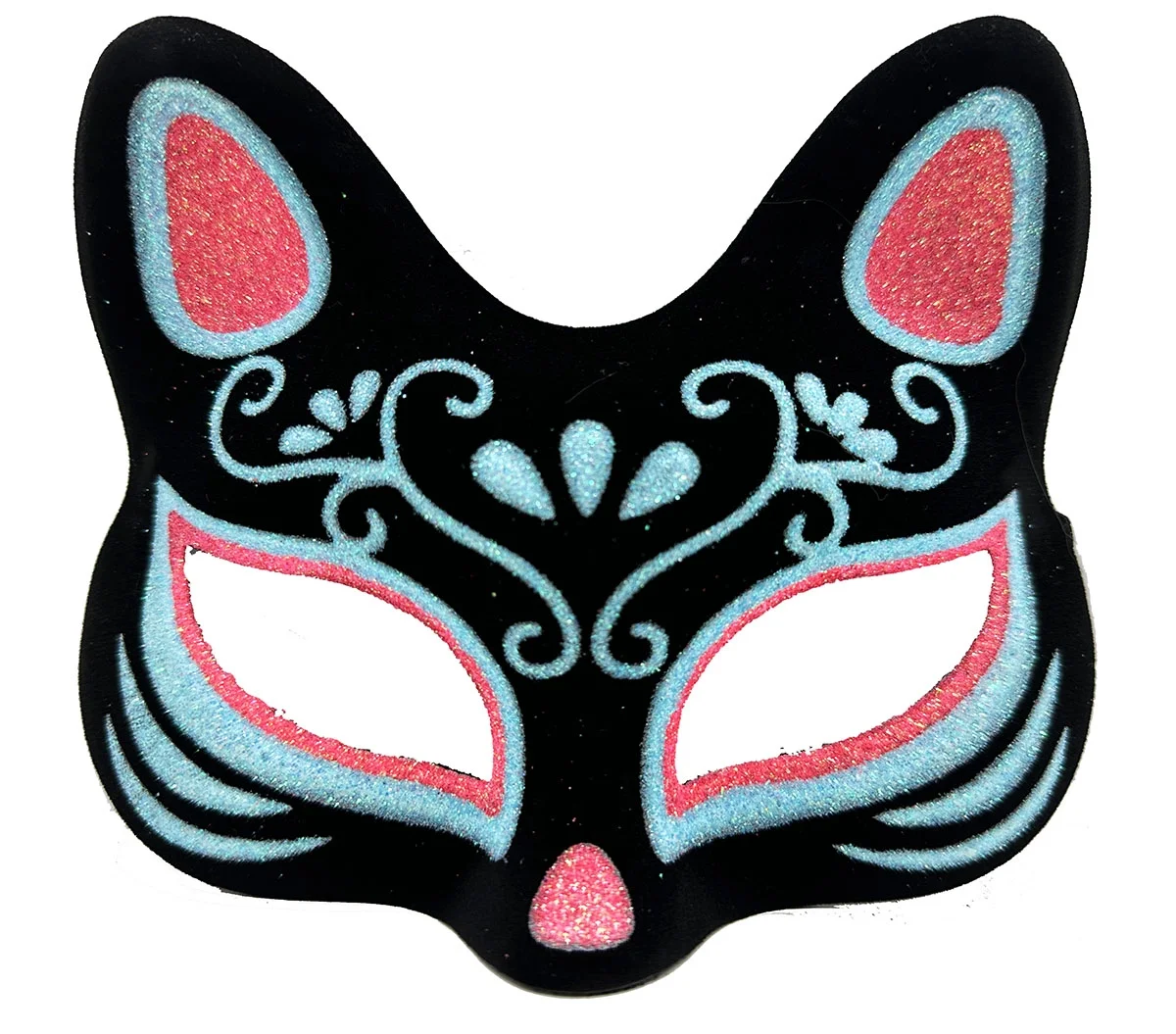 Kostüm maskelerinin en sevimli ve eğlenceli maskelerinden biri olan Siyah Renk Mavi Kırmızı Simli Süet Kaplama Kedi Maskesi ile göz ştırın!
