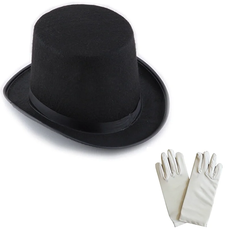 Siyah Sihirbaz Fötr Şapka 15 cm - 1 Çift Beyaz Sihirbaz Eldiveni - Yetişkin Boy