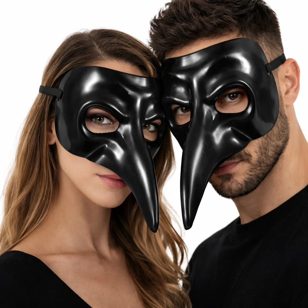 Siyah uzun burun tasarımıyla dikkat çeken veba doktoru maskesi, Venedik tarzı klasik maskelerden ilham alınarak üretilmiştir. Gizemli ve dikkat çekici görünümü sayesinde parti, eğlence, kostüm ve sahne etkinliklerinde kullanılabilecek ideal bir aksesuardır.