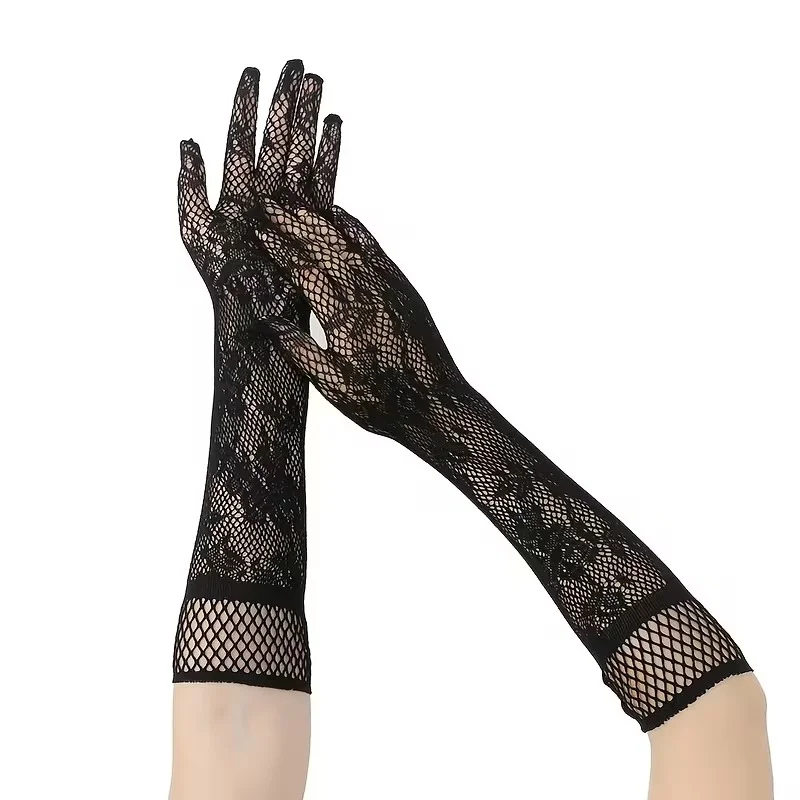 Şık ve zarif tasarımıyla öne çıkan siyah uzun gül desenli dantel eldiven, özel günler, parti organizasyonları ve kostüm kombinleri için ideal bir aksesuardır. İnce dantel dokusu ve zarif gül desenleri ürüne estetik ve dikkat çekici bir görünüm kazandırır.