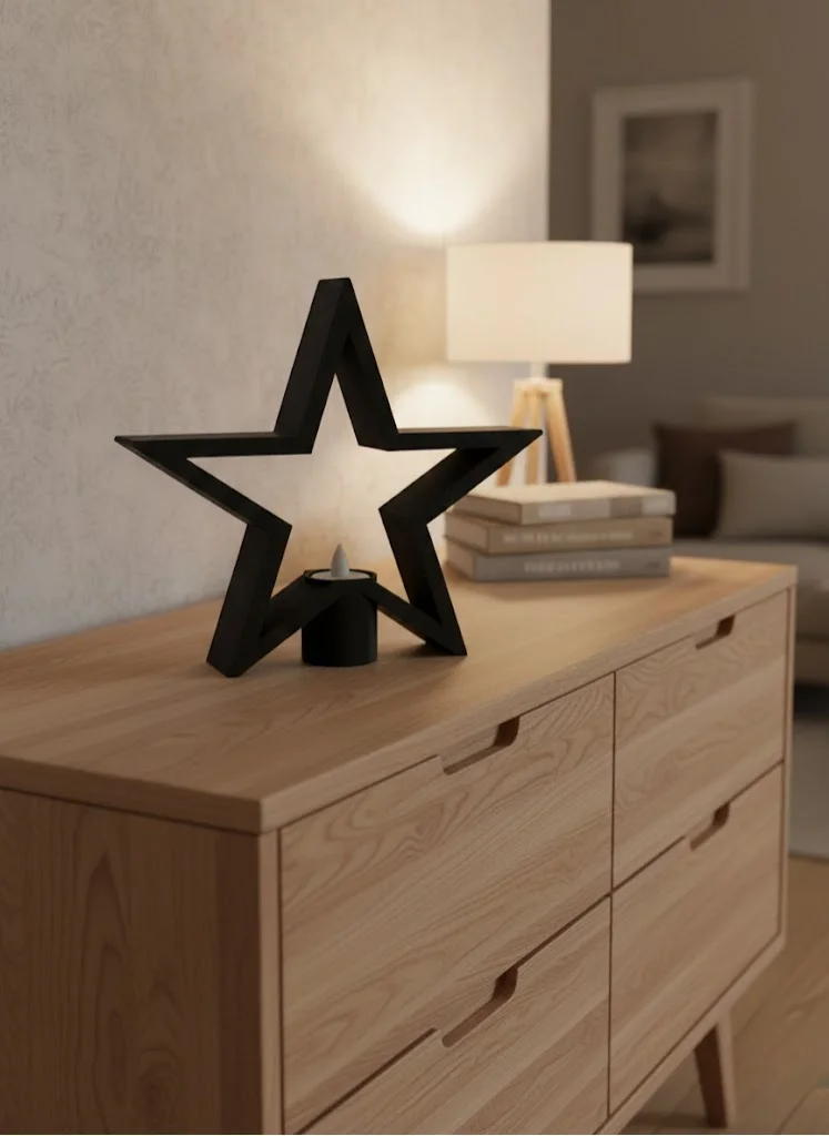 Siyah Yıldız Şeklinde Mumluk Loş Işık Dekor Aksesuarı