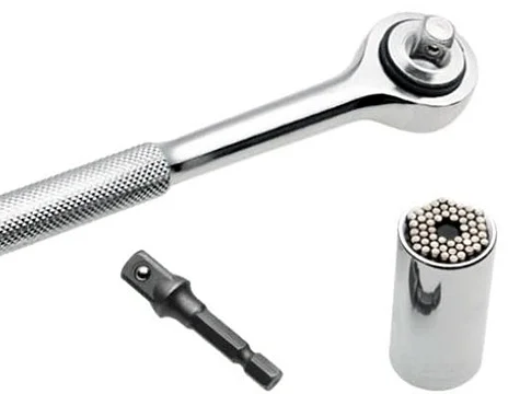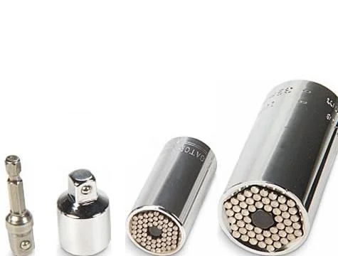 Tüm lokma takımlarınızı anahtarlarınızı bir kenara bırakın. Solid Grip Universal Socket sizlere inanılmayacak derecede kolaylıklar sunacak ve yıllarca evde, arabanızda, teknenizde, motorsiklerinizde, iş yerinizde, karavanınızda ve her yerde hatta cebinizde bile taşıyabileceksiniz. Solid Grip Amerika'da üretilmiş olup soket içerisinde yer alan sertleştirilmiş alasımlı 54 adet çubuklar vasıtasıyla 7-19 mm arası yuvarlak olmayan tüm somun civata kanca vs. ( Paslı olsun olmasın farketmez ) otomatik olarak uyum sağlar.