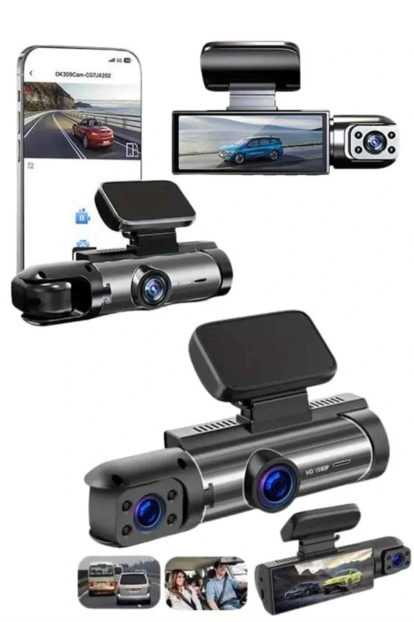 3 Kameralı Araç İçi Kayıt Cihazı 1080P Full HD Gece Görüşlü ve Wi-Fi Bağlantılı