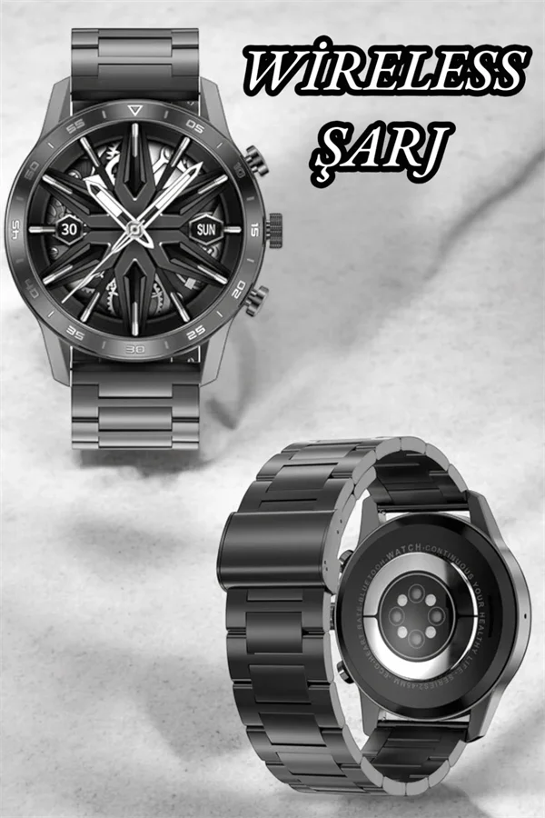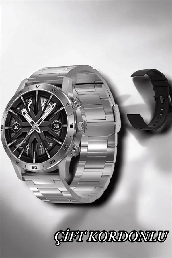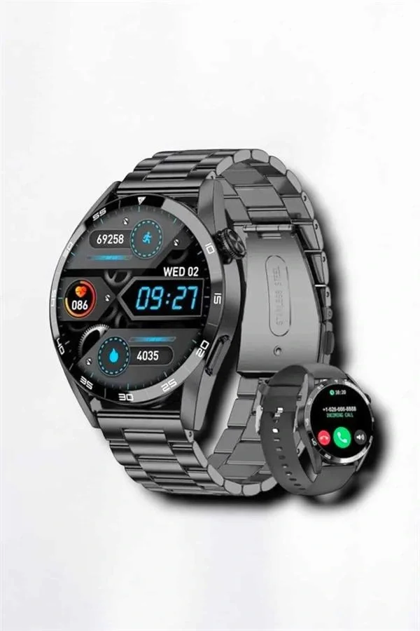 Akıllı Saat Amoled Ekran Metal Ve Deri Kordonlu Uyku ve Sağlık Takibi Titreşimli