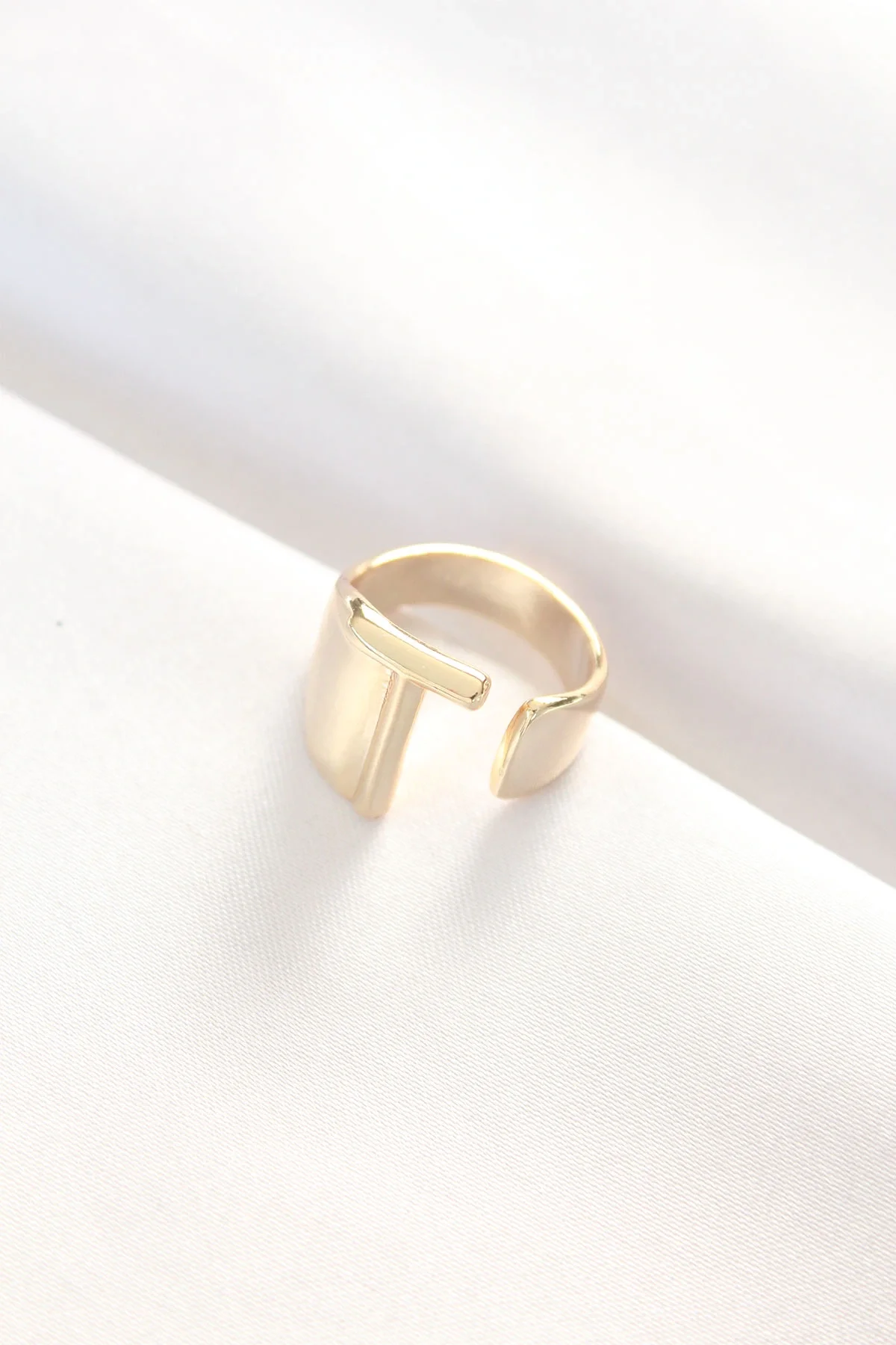 T Harfli Altın Renk Ayarlanabilir Yüzük