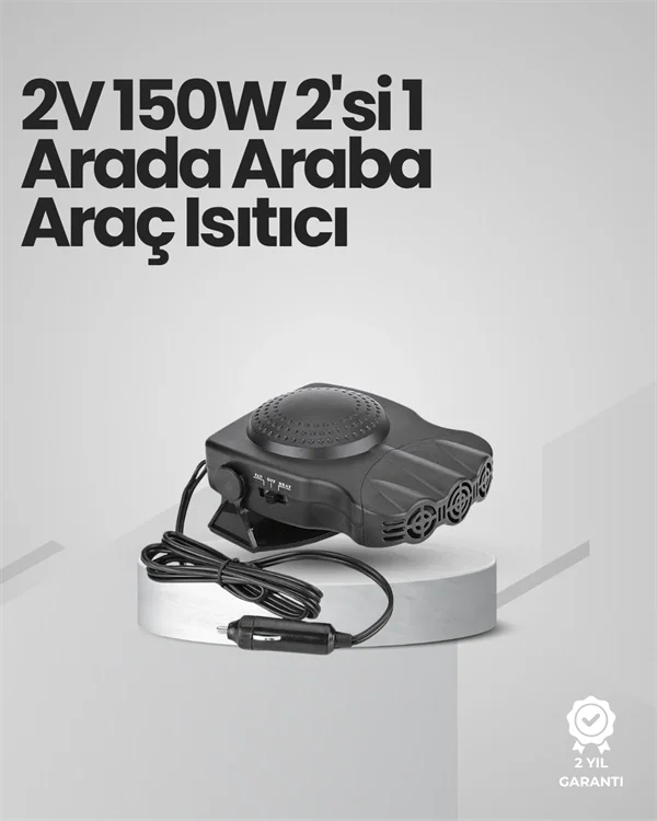 3’ü 1 Arada Araç İçi Isıtıcı ve Fan 150W Güçlü ve 360° Dönebilen Başlıklı