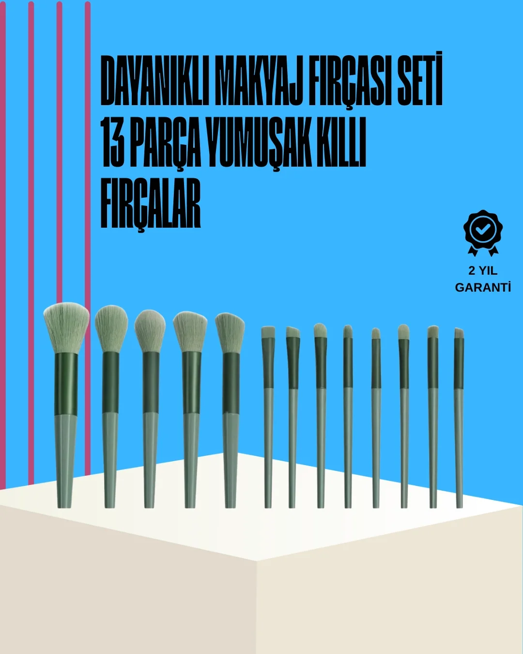 umuşak Kıllı Estetik Tasarımlı 13'lü Makyaj Fırçası Seti Günlük ve Profesyonel Kullanım