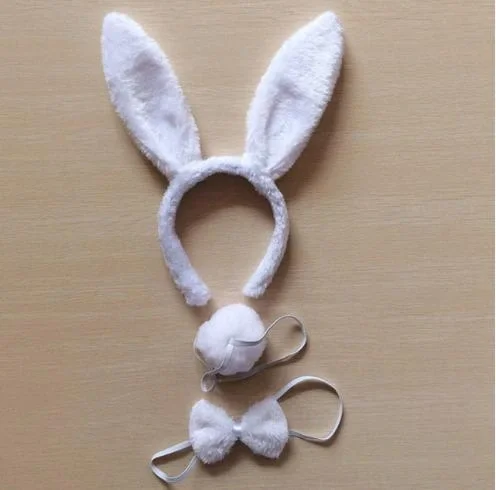 Tavşan Kostüm Seti Taç Papyon Kuyruk Beyaz Renk (5047)
