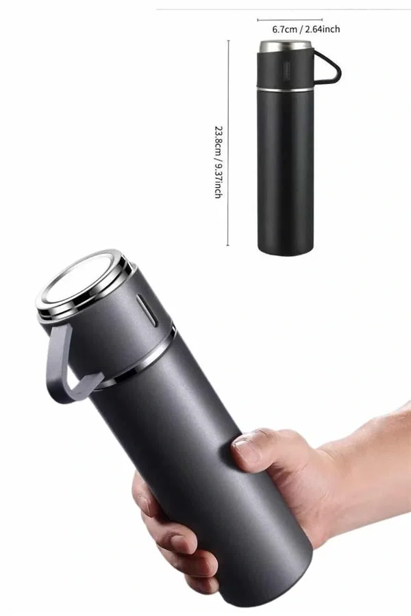 Isıyı Uzun Süre Koruyan 500 ml Termos Seti | Çelik Gövde, 2 Bardaklı, Hediye Kutulu
