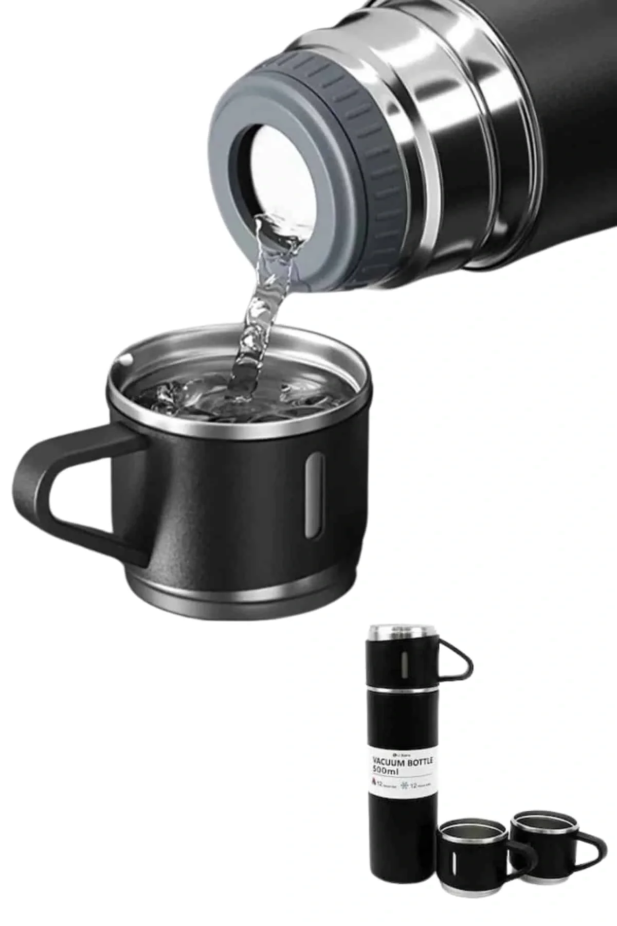 Isıyı Uzun Süre Koruyan 500 ml Termos Seti | Çelik Gövde, 2 Bardaklı, Hediye Kutulu