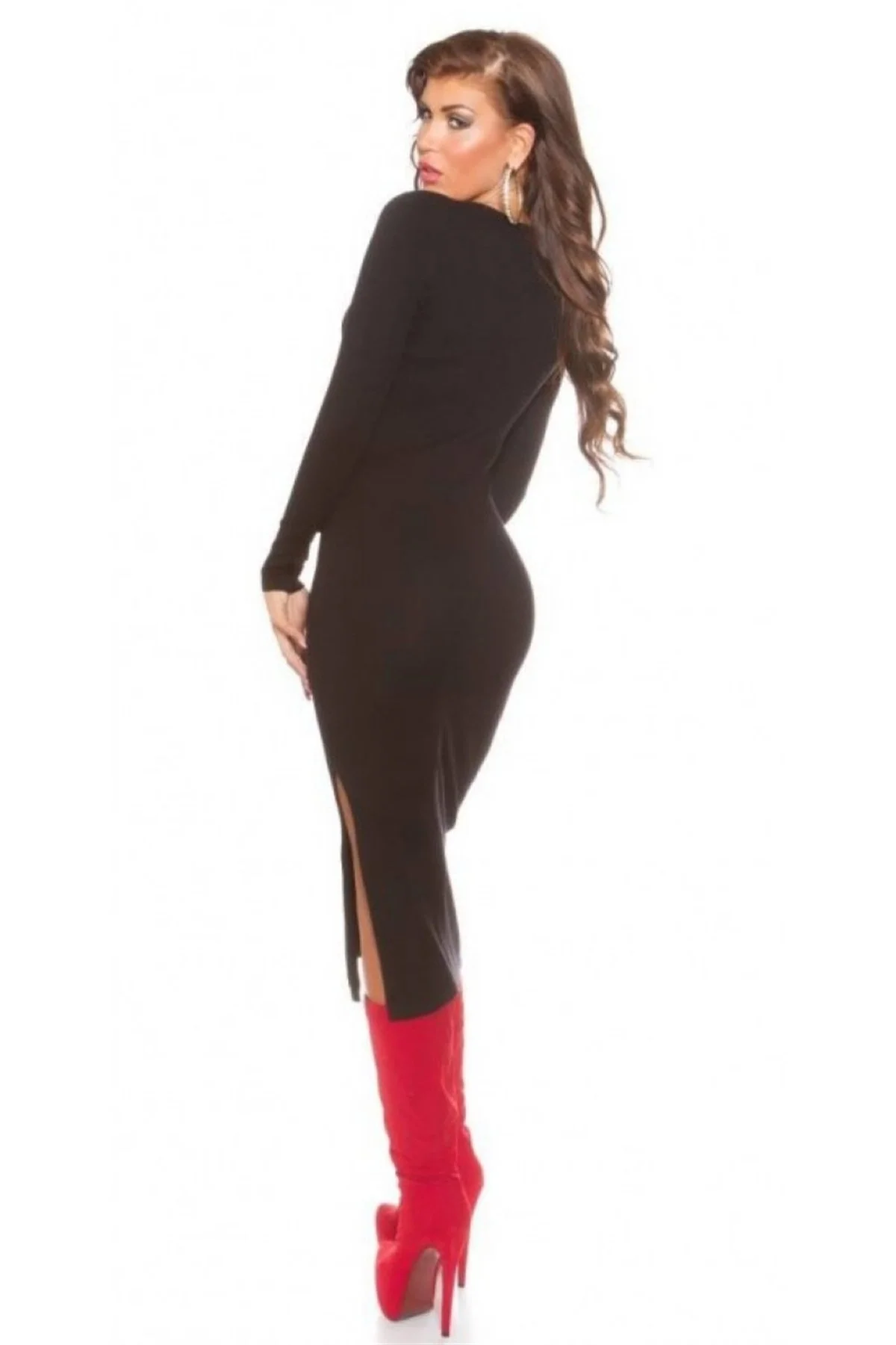 Uzun kollu yırtmaçlı kalem elbise. Beden ve renk seçenekleri mevcuttur. Esnek ve kaliteli kumaşı ile taklit model yapanlardan çok farklıdır. Kaliteli dikim ve kalıpları ile Terry Pau markası diğer markasız elbiselerden çok daha üstündür.