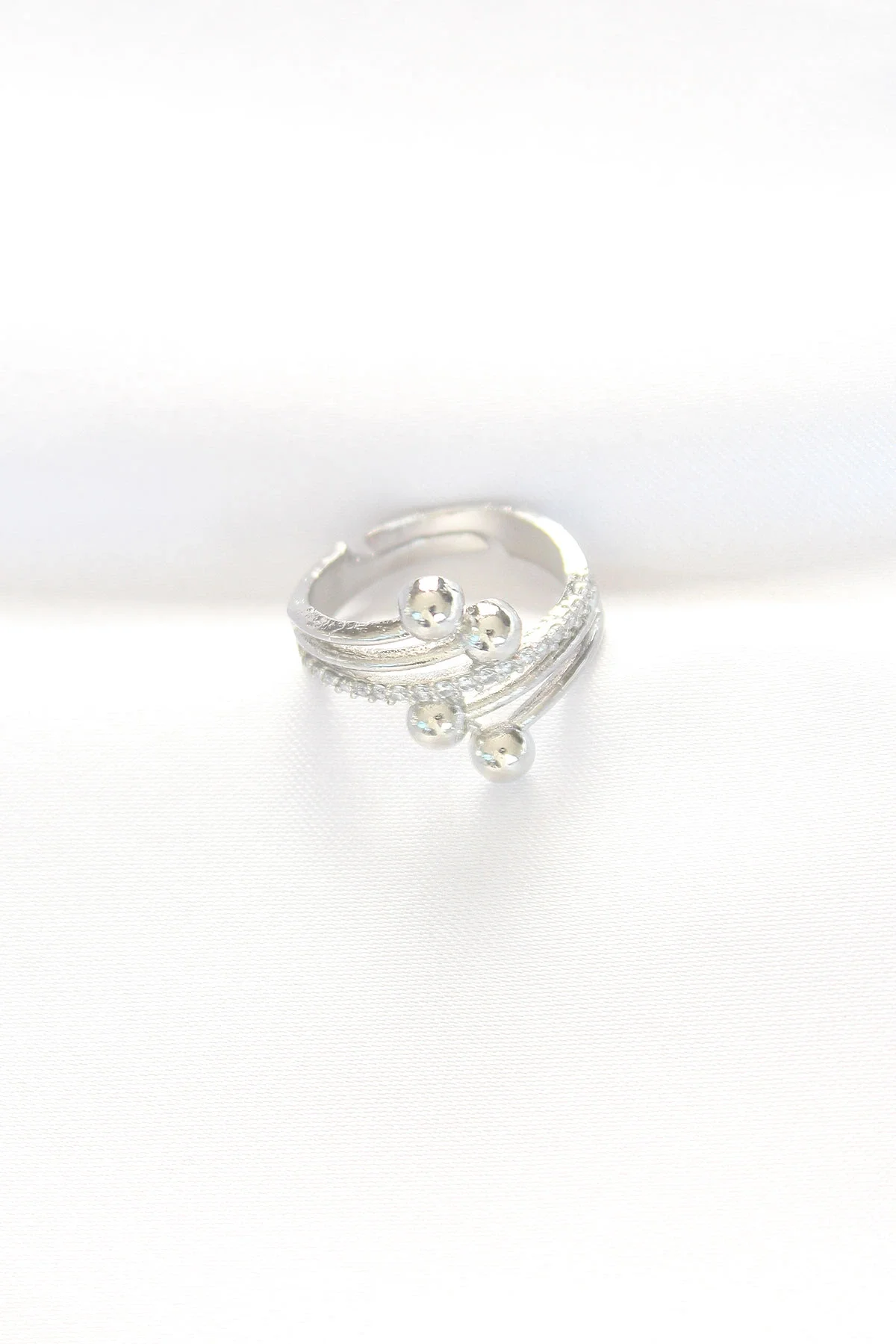 Topçuk Model Zirkon Taşlı Silver Renk Ayarlanabilir Yüzük