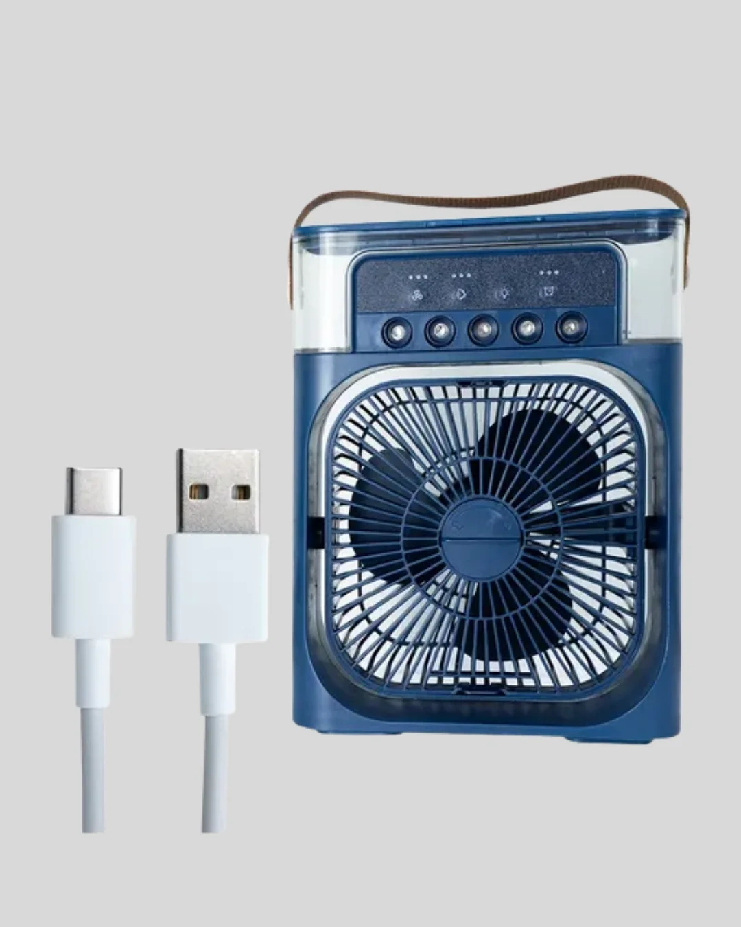 3’ü 1 Arada Mini Klima Fan USB Şarjlı, 7 Renk Gece Lambalı ve Nemlendirici