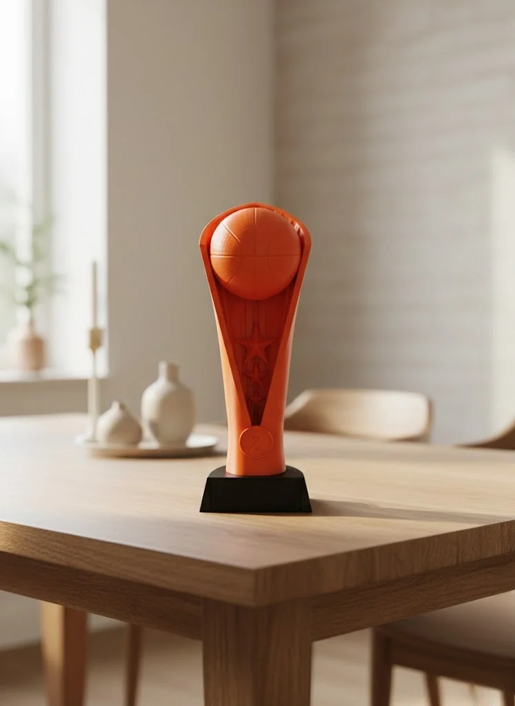 Turuncu Kupa 23cm Basketbol Temalı Dekoratif Ödül Biblosu