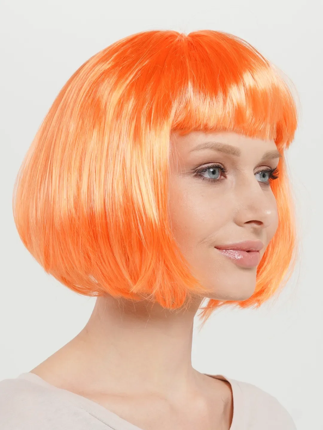 Turuncu Renk Küt Parti Peruğu Kısa Takma Saç