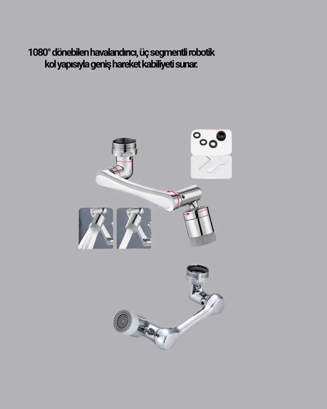Üç Segmentli 1080 Derece Musluk Aparatı Esnek Döner Havalandırıcı Pratik Kullanım