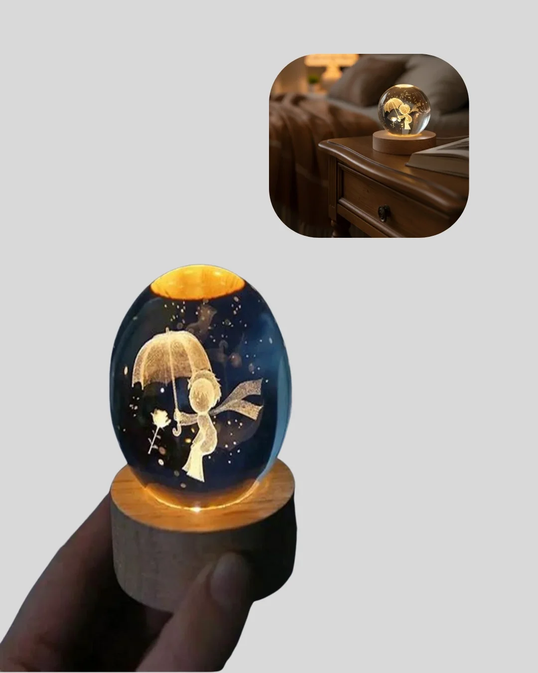 USB LED 3D Küçük Prens Kristal Küre Ahşap Standlı Gece Lambası