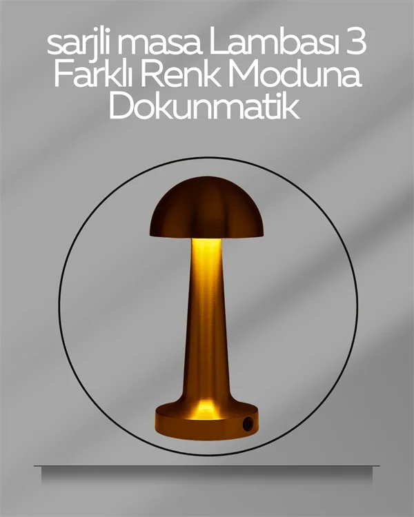 GOLD Mantar Lamba CT-8429 Lizbon 3 Renk Şarjlı Masa Lambası (5047)