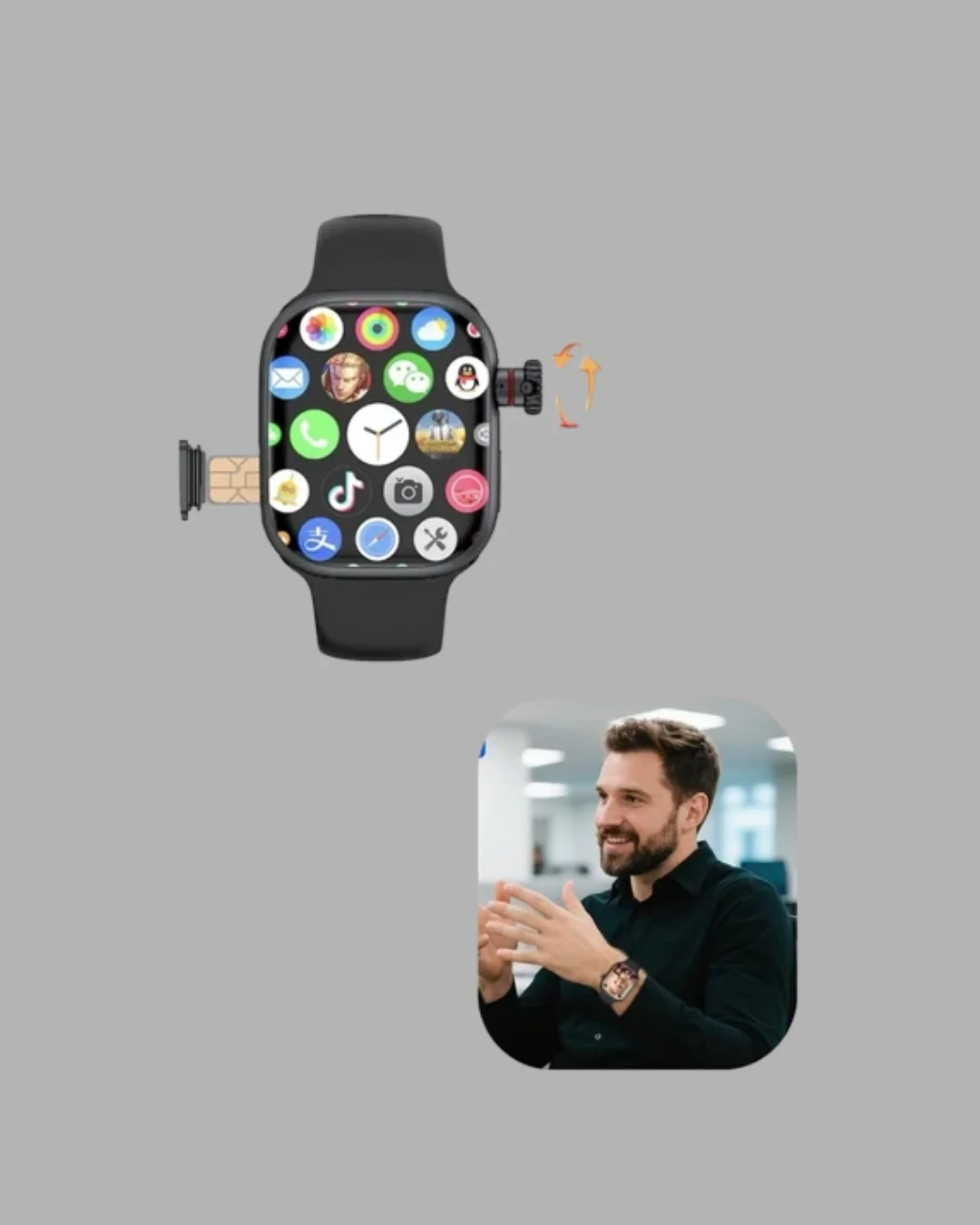 Sesli Arama Özellikli SIM Kartlı Siyah Akıllı Saat