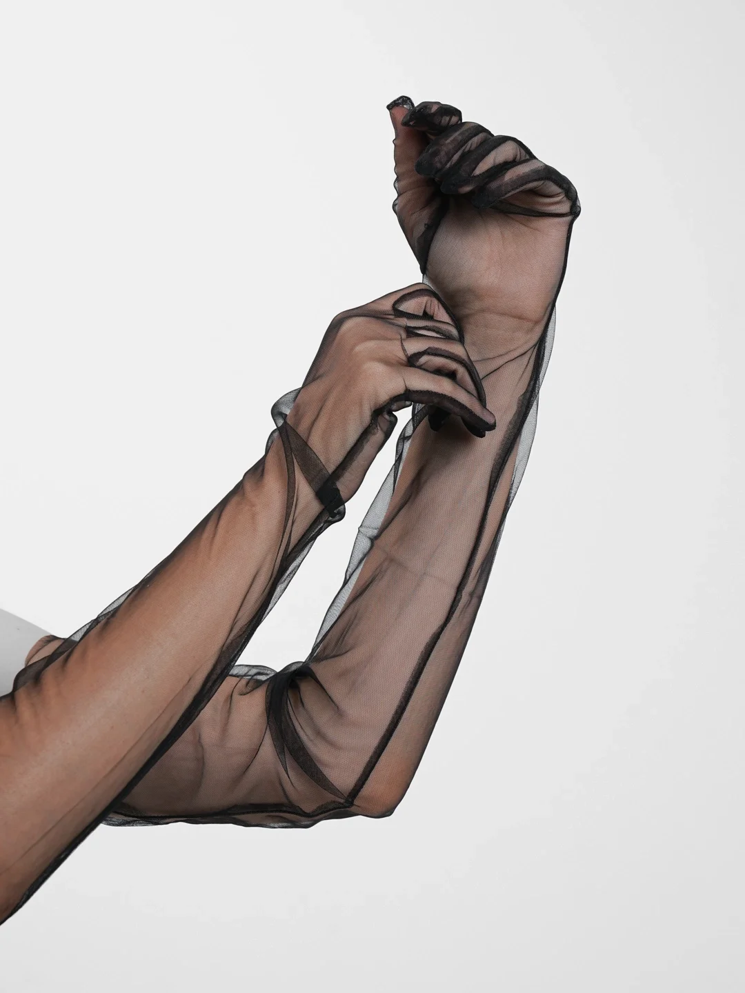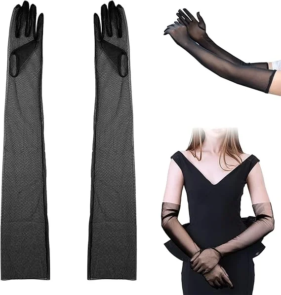 Uzun Boy Likralı Siyah Renk Yetişkin Mega Tül Eldiven