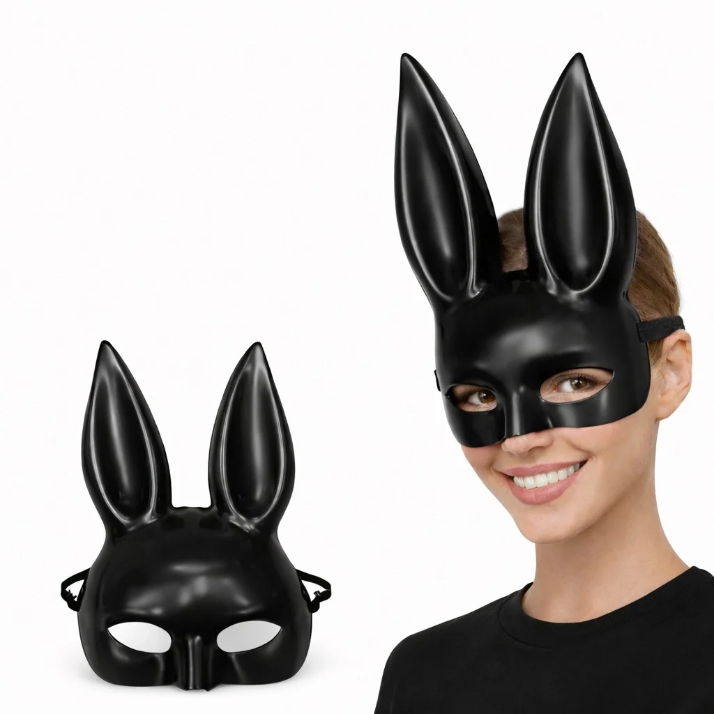 Gizemli ve iddialı bir görünüm için tasarlanan mat siyah tavşan maskesi, uzun kulak detayıyla dikkat çekici bir stil sunar. Minimal ve güçlü tasarımı sayesinde sade kombinleri bile anında farklı bir havaya büründürür.