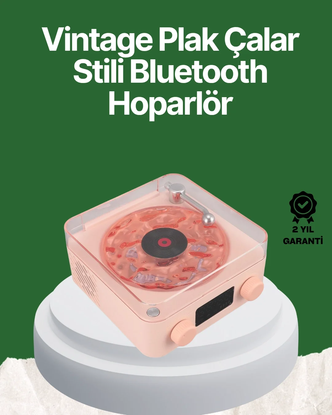 Vintage Tarz Bluetooth Hoparlör – Gece Işığı ve Zaman Göstergeli