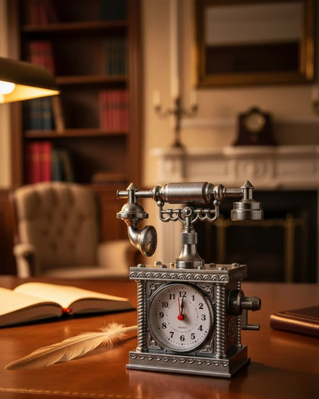 Vintage Telefon Tasarımlı Masa Saati ve Çalar Saat Dekoratif Model