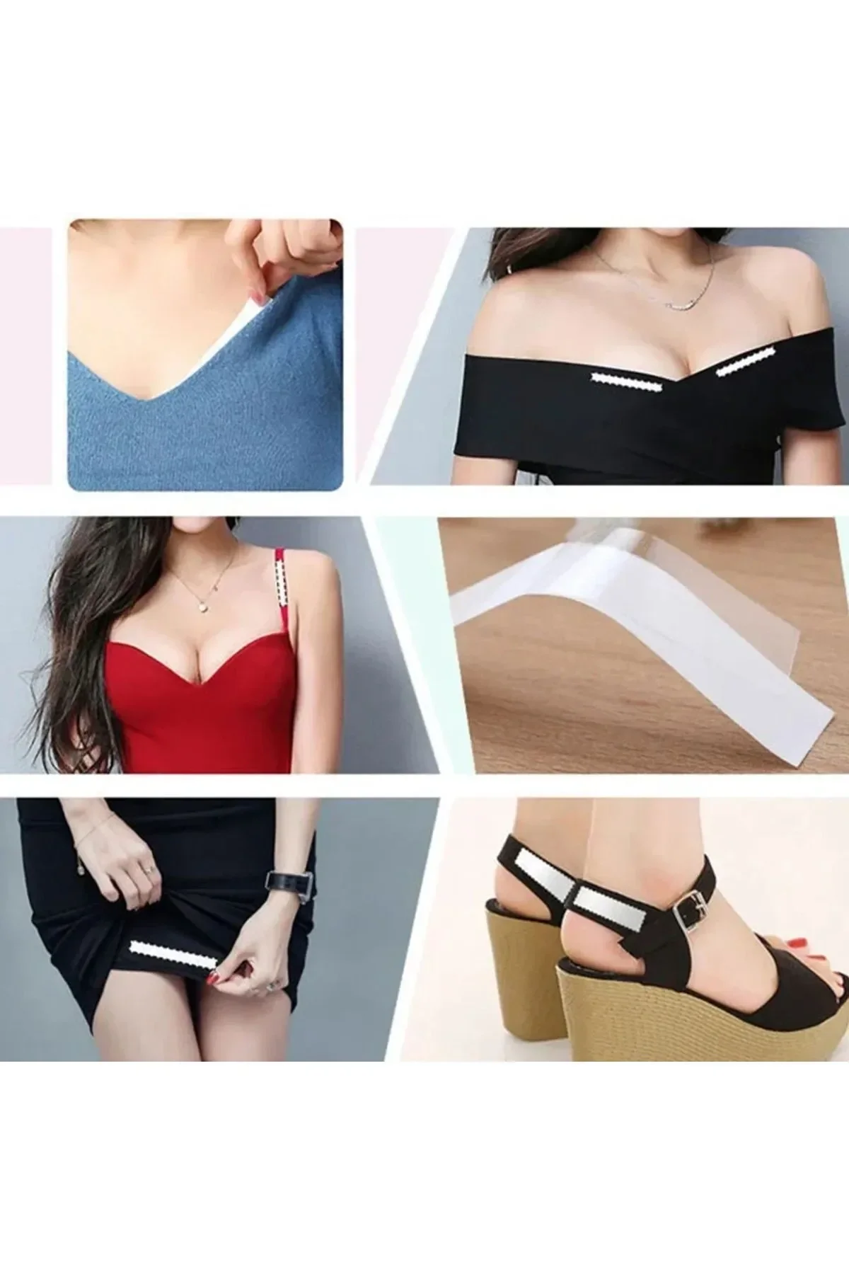 VÜCUT VE KIYAFET İÇİN ÇİFT TARAFLI SABİTLEME DEKOLTEABİYE GELİNLİK ELBİSE SÜTYEN BANTI TEK EBAT Giysisabitleme, dekolte kapatma ve vücut bandı giysileri vücuda bağlamak için kullanılabilen çift taraflı bir vücut bandıdır.