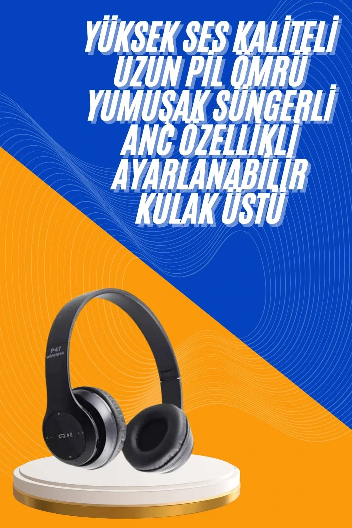 Wireless 5.0 Bluetooth Kablosuz Kulaklık ANC Özellikli Kulak Üstü Ayarlanabilir