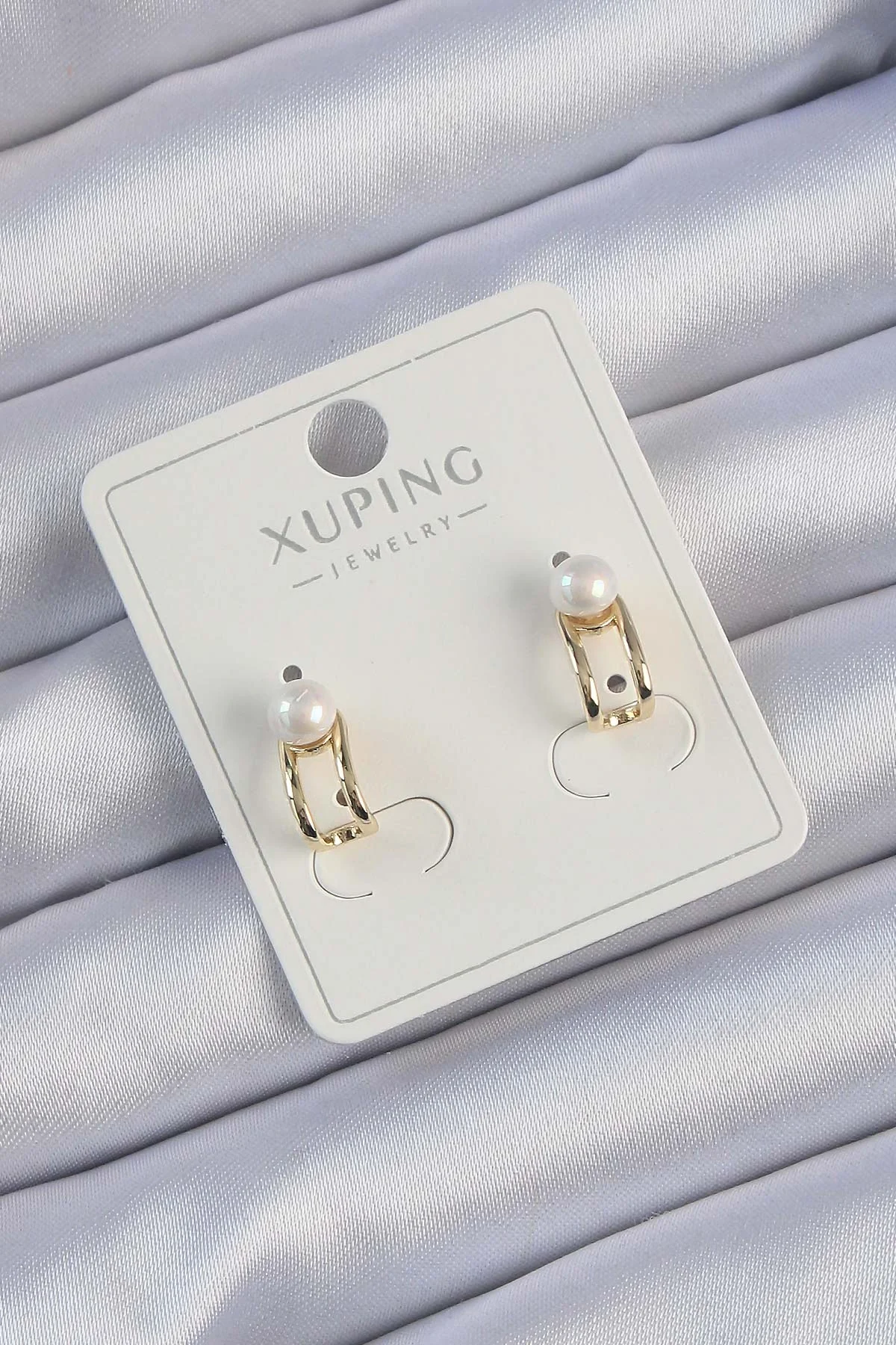 Xuping Gold Renk İnci Taşlı Halka Küpe