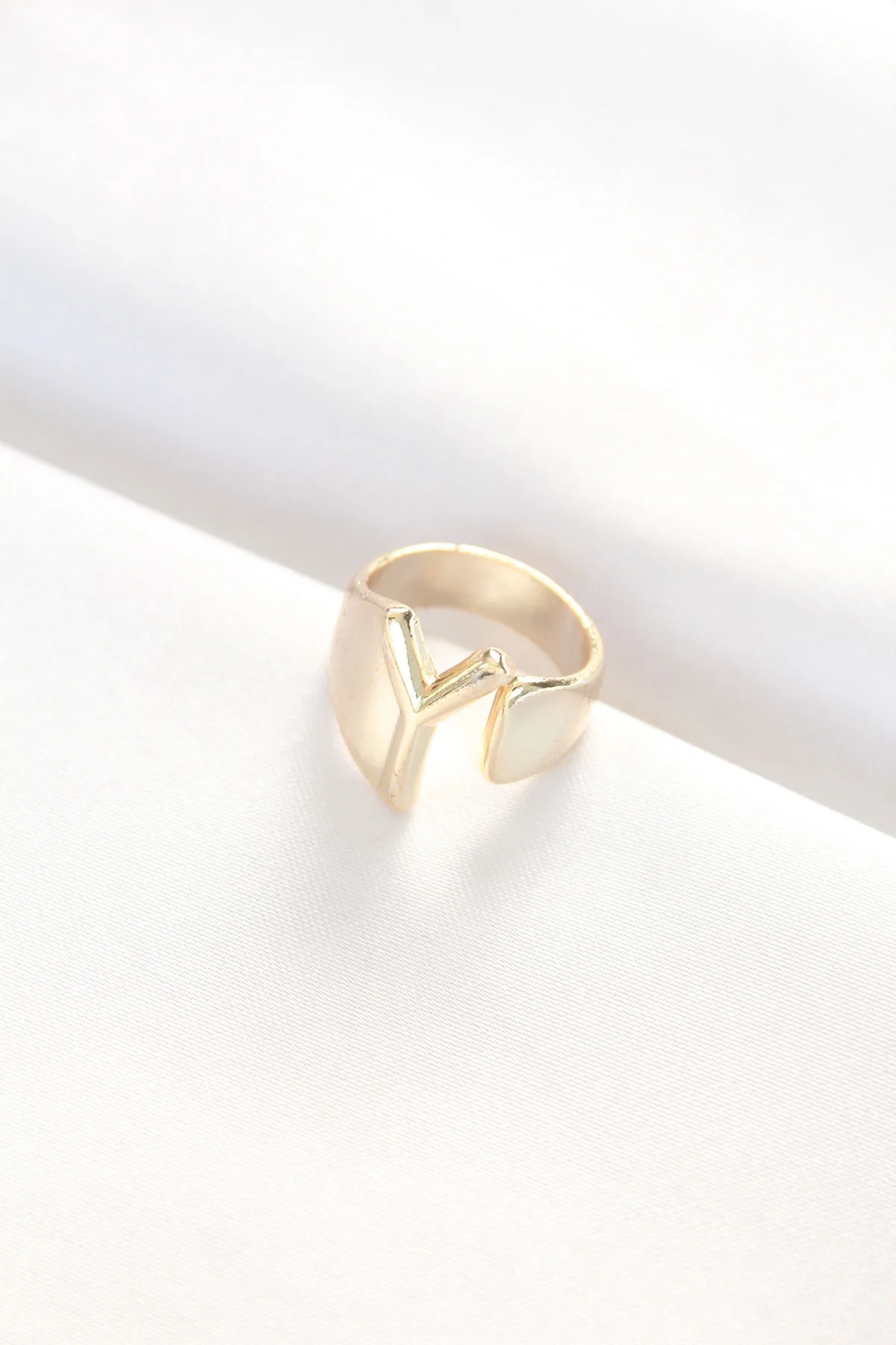 Y Harfli Altın Renk Ayarlanabilir Yüzük