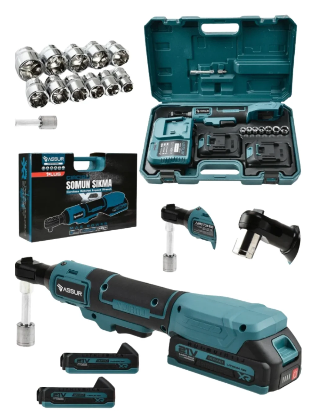 Yandan Sıkma Somun İşlemleri İçin 21V Akülü Cırcır Anahtar