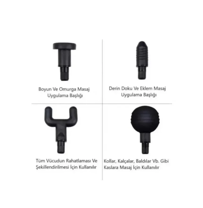 Yeni Nesil Darbeli Titreşimli Şarjlı Sporcu Masaj Tabancası 4 Başlıklı LC-002 (5047)