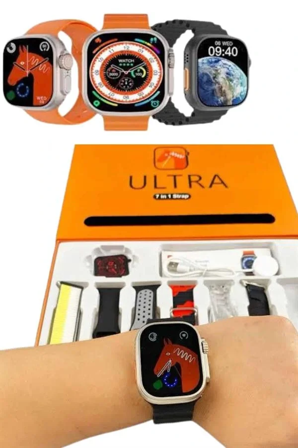 7 Kordonlu Akıllı Saat Plastik Kordon Hasır Kordon Çelik Kordon