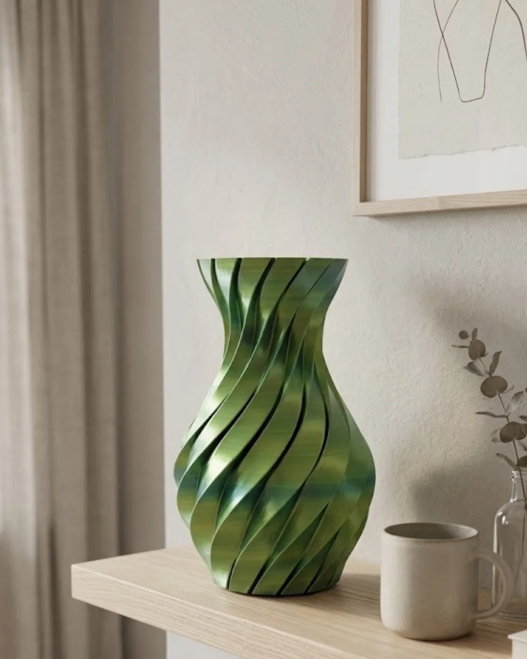 Yeşil Spiral 3D Baskı Vazo Estetik Modern Ev Ofis Dekoru
