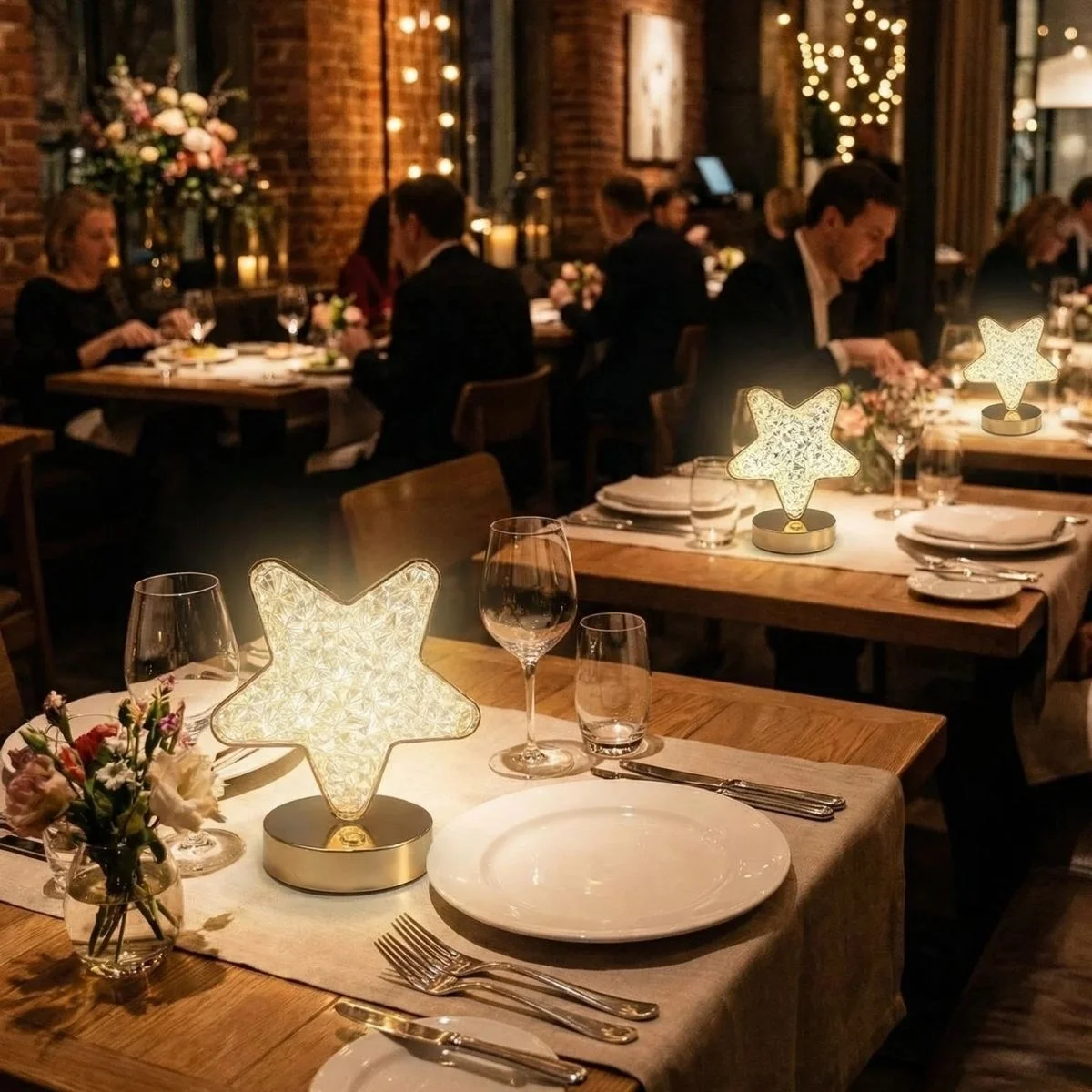 Yıldız Model Kristal LED Masa Lambası – Dokunmatik, 3 Renk Işık Modlu, Şarjlı Mini Dekoratif Gece Lambası