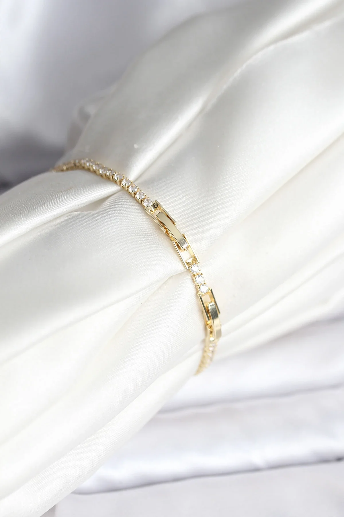 Yıldız Model Zirkon Taşlı Gold Renk Pirinç Su Yolu Kadın Bileklik