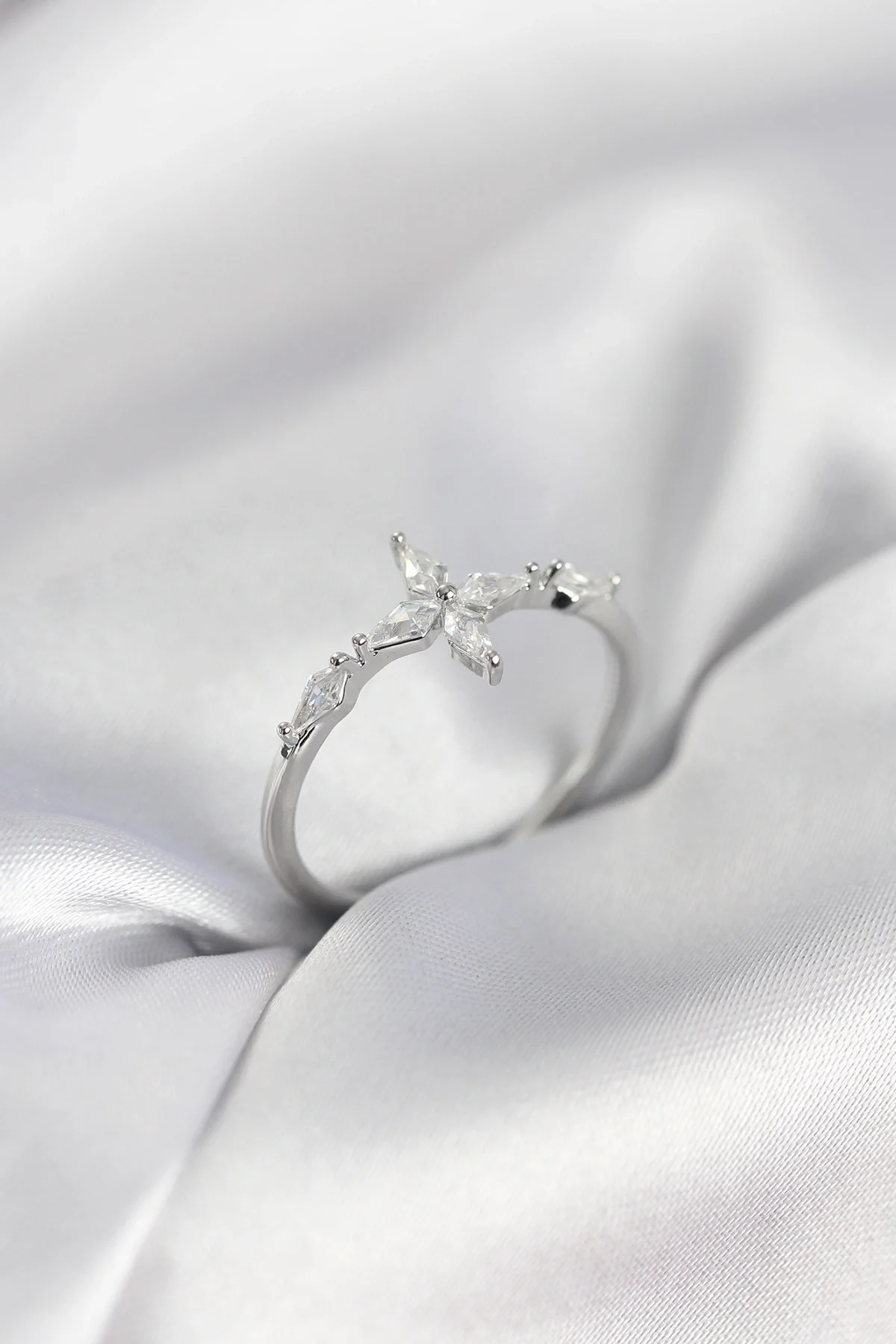 Yıldız Model Zirkon Taşlı Gümüş Renk Kadın Yüzük