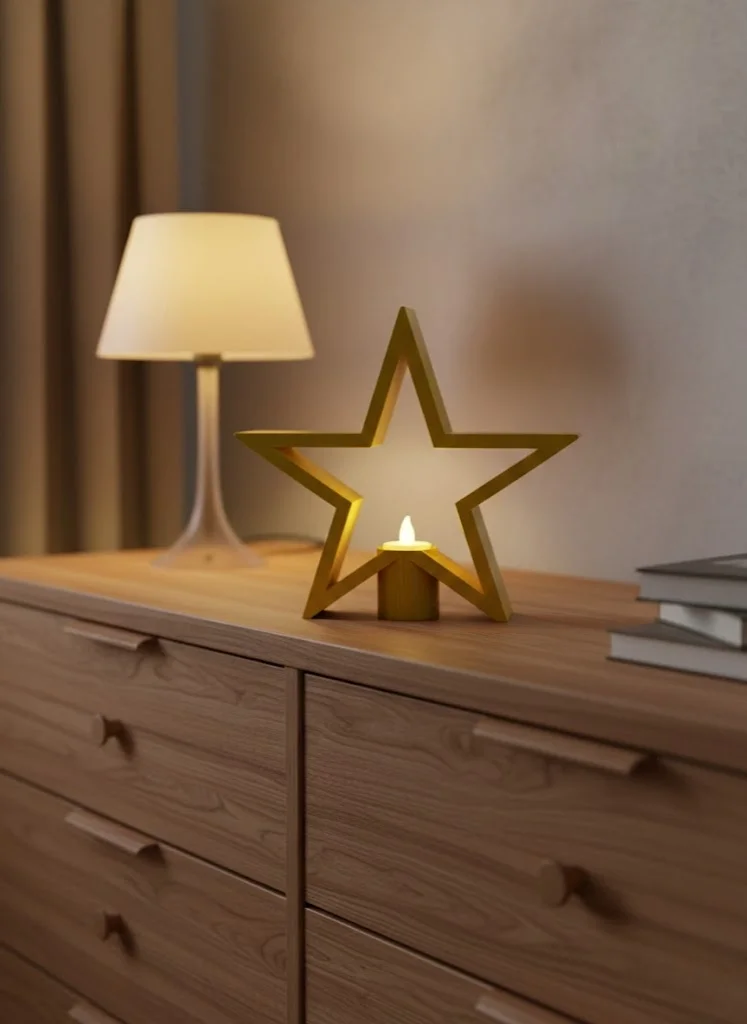 Yıldız Şeklinde Sarı Mumluk Loş Işık Ev Aksesuarı