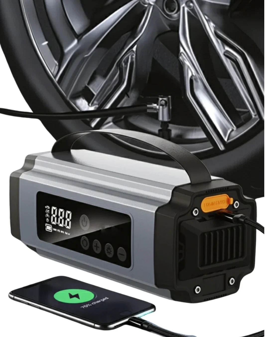 Araç İçin Akü Takviye Cihazı ve Kablosuz Hava Kompresörü