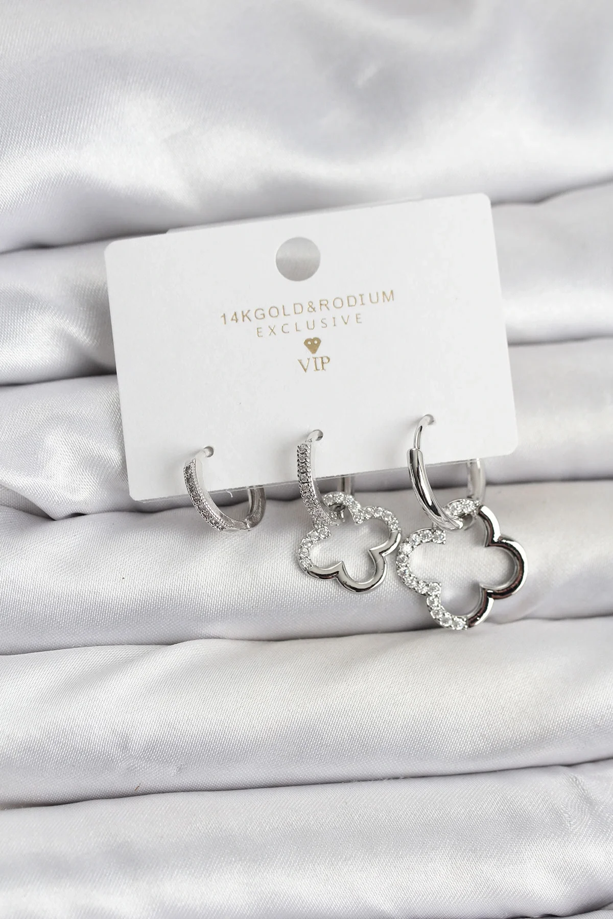 Yonca Model Gümüş Renk Pirinç 3'lü Kadın Küpe Seti