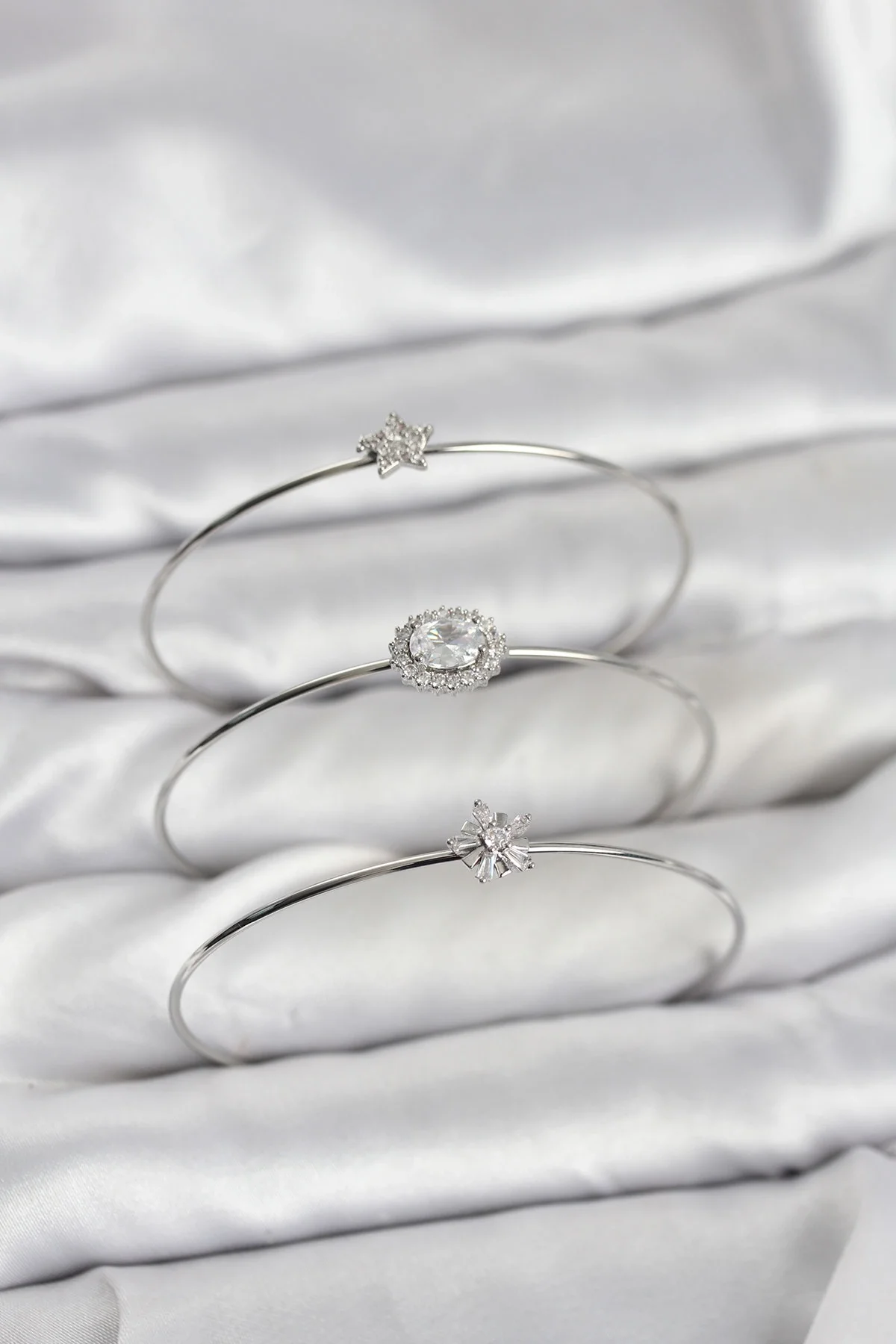 Zirkon Taşlı Gümüş Renk Tek Taş Model 3'lü Kadın Bileklik Kombini