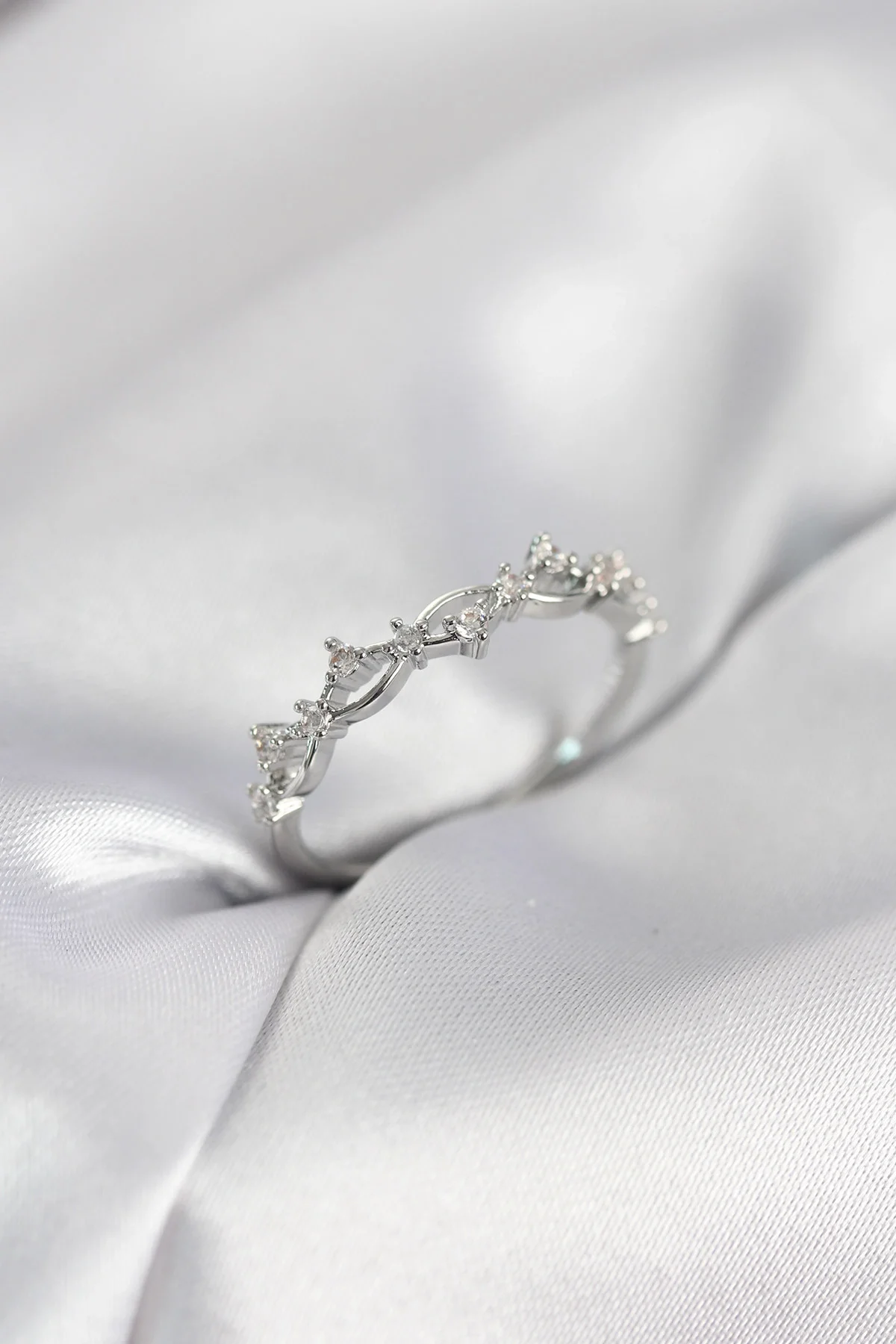 Zirkon Taşlı Pirinç Gümüş Renk Kadın Yüzük