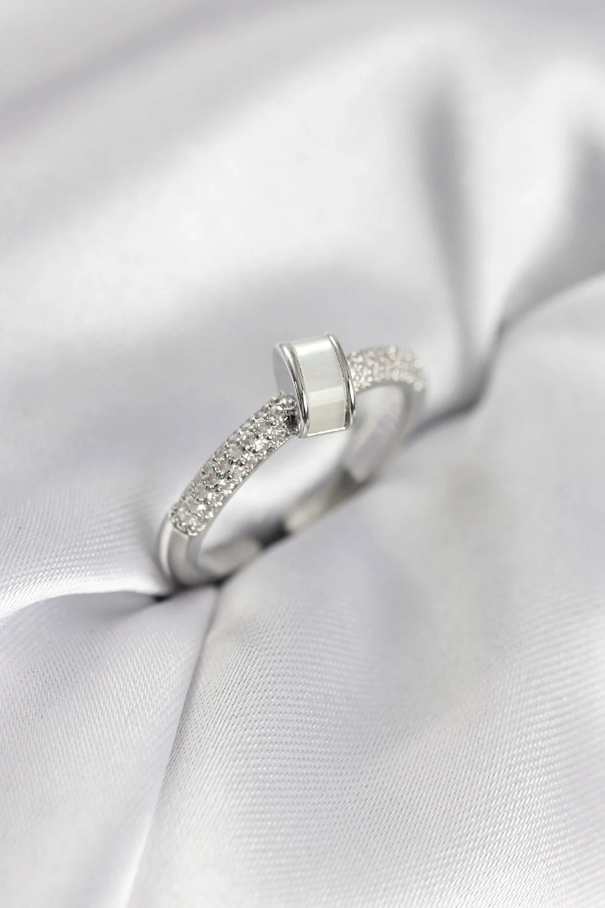 Zirkon Taşlı Sedefli Gümüş Renk Kadın Yüzük