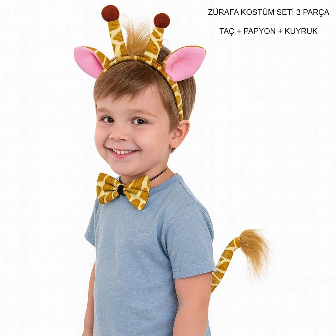 Zürafa Kosümü Aksesuar Seti 3 lü - Taç Papyon Kuyruk